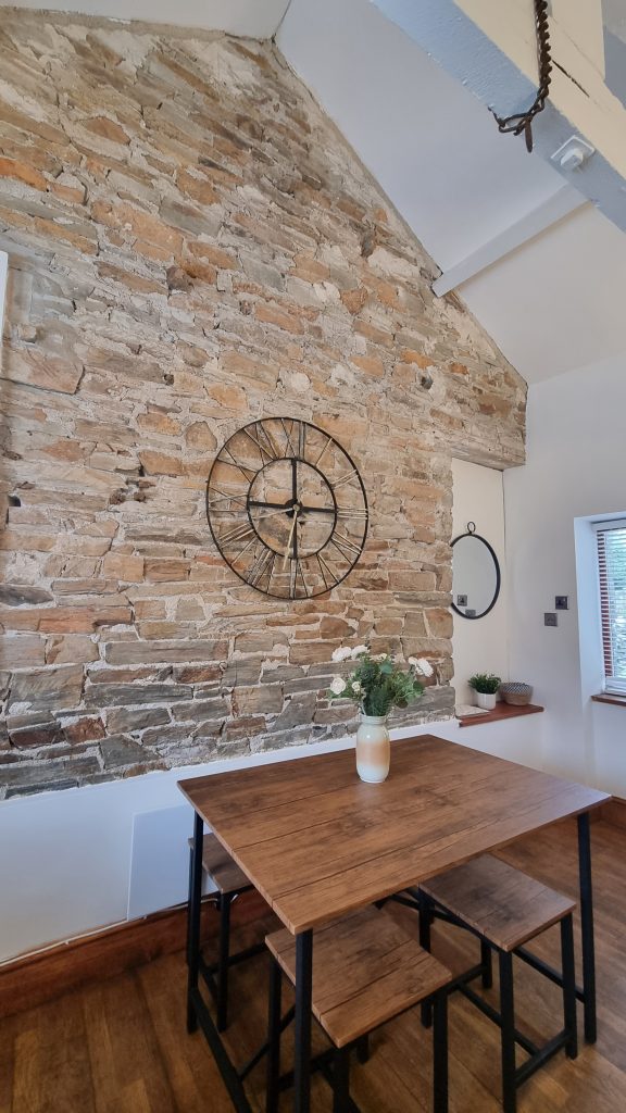 Nestled in the countryside, the stone barn, originally built in 1890, underwent a captivating transformation in 2007 when it was converted into a delightful holiday cottage. With its ancient allure carefully preserved, guests are welcomed by the rustic stone walls in the kitchen, lofty vaulted ceilings, and the timeless charm of exposed wooden beams throughout.